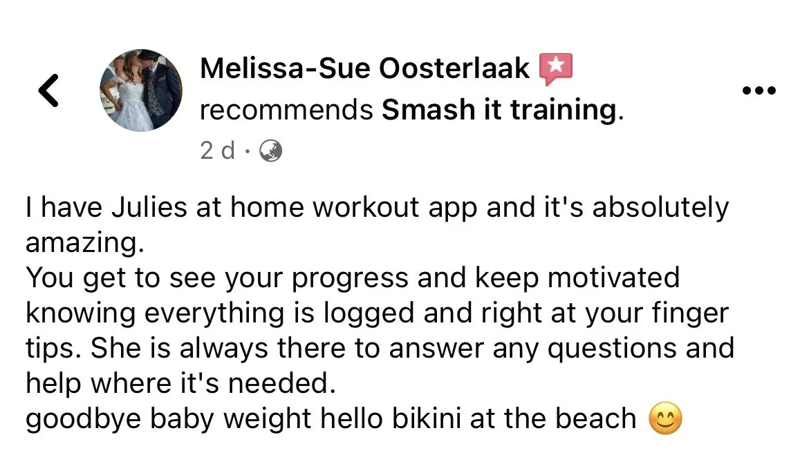 online coaching though our Trainerize app $80 AUD per week, includes personalised program, calories and macros and weekly check in